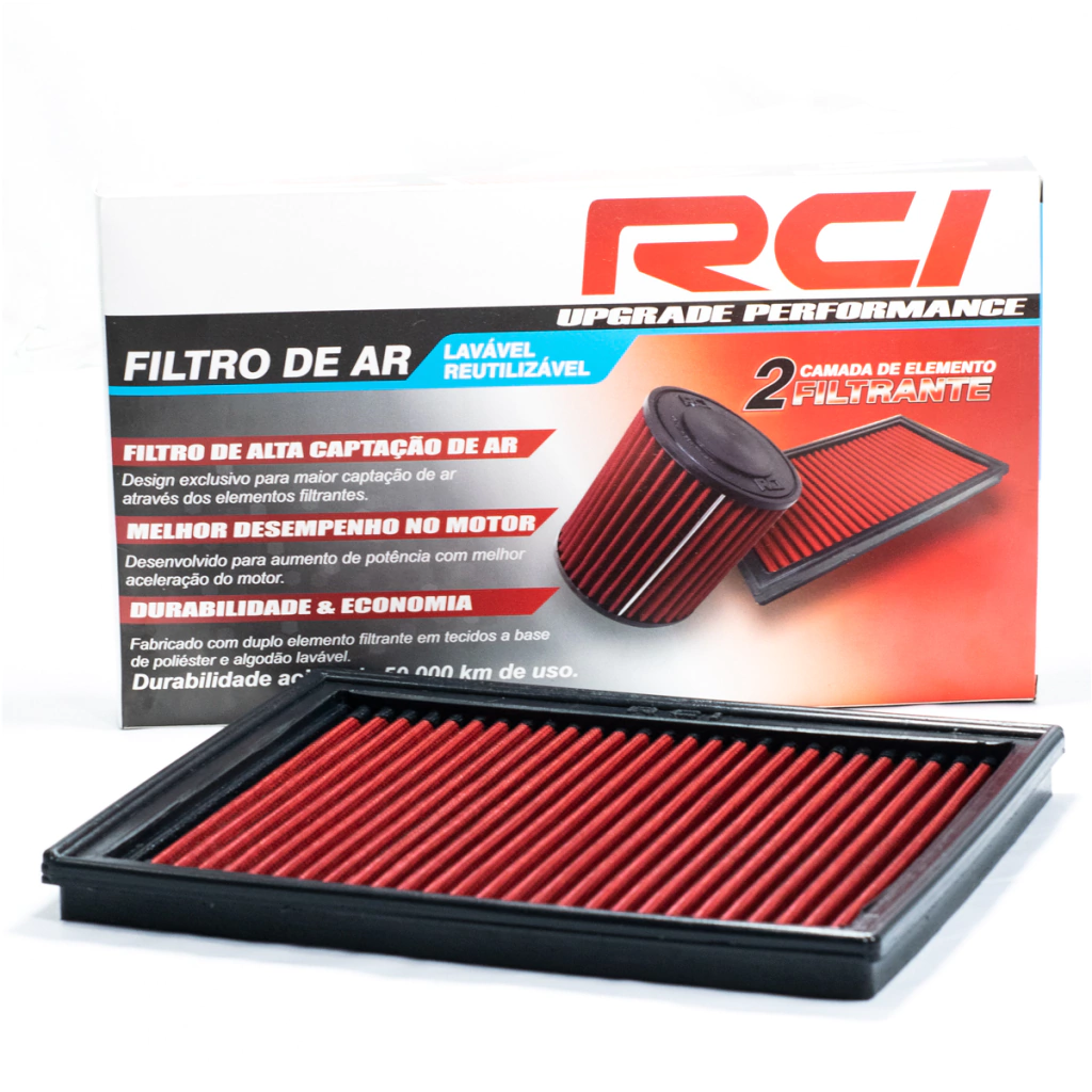 O filtro de ar inbox RCI possui sistema de filtragem a seco através de camadas de tecidos filtrantes a base de poliéster e algodão lavável.