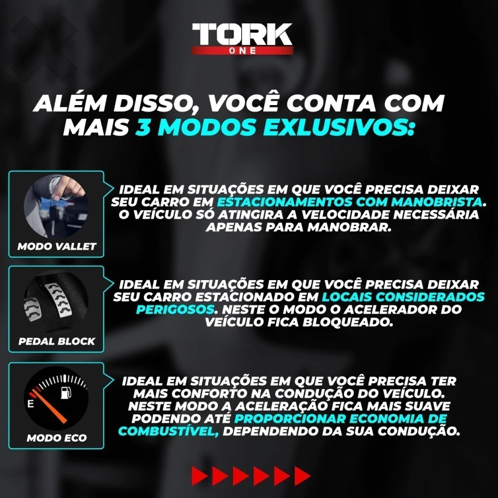 1 Módulo Tork One (Gas Pedal) específico p/ veículo de sua escolha;