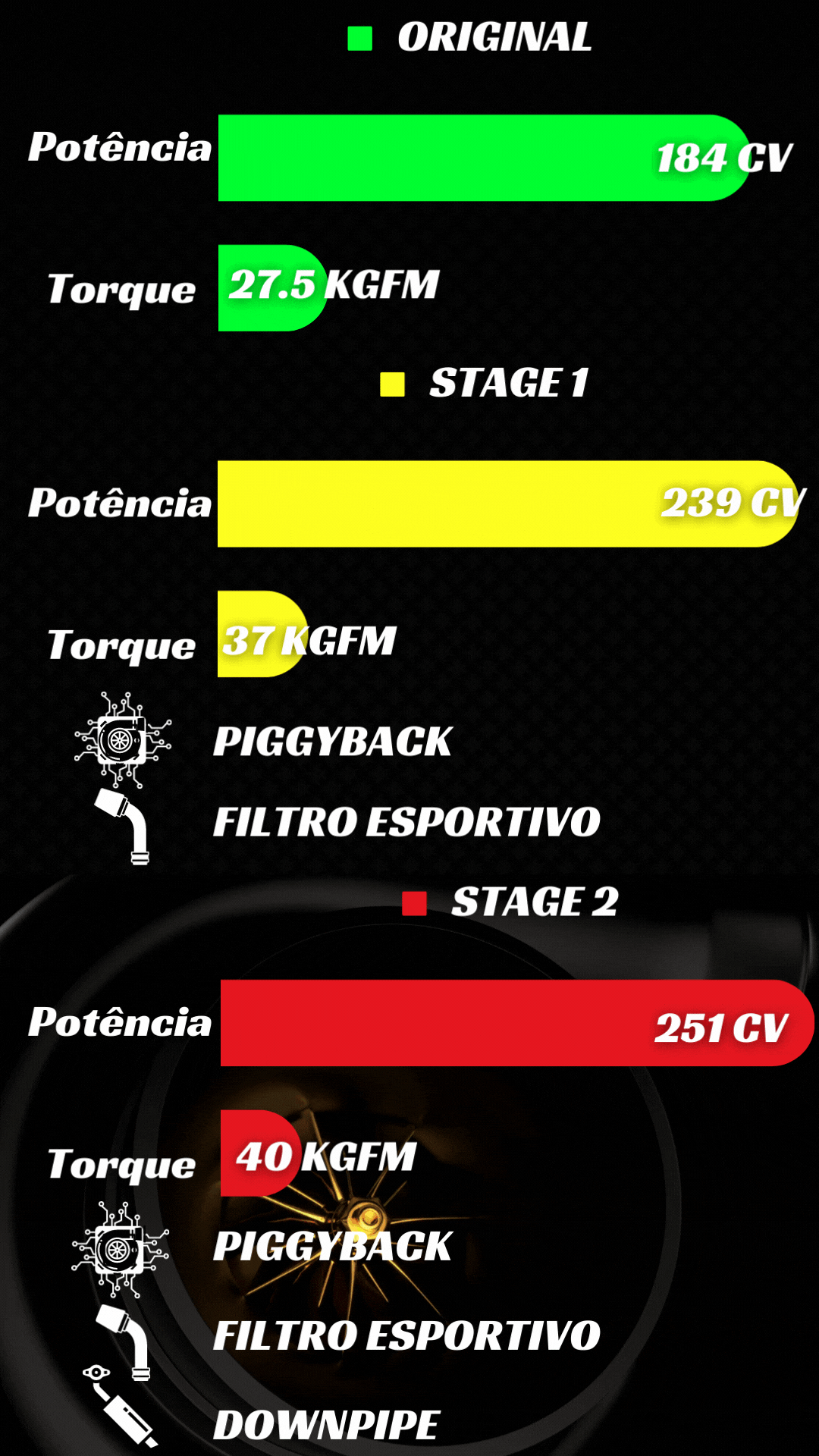 • 06 Mapas de Desempenho com ganho crescente de potência e torque;