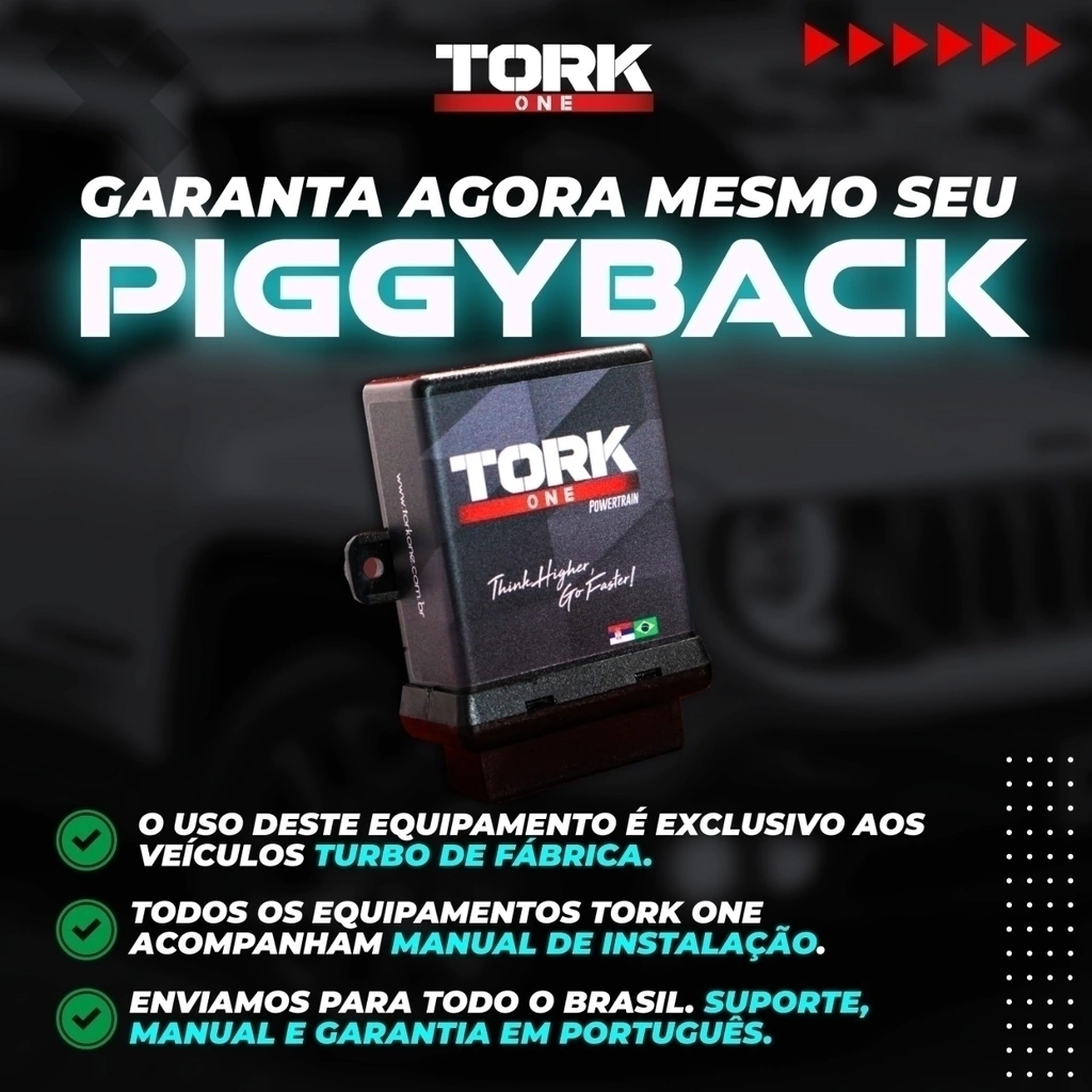 O Piggyback Tork One é um módulo externo de conexão Plug and Play que atua em conjunto com a ECU (Módulo de Injeção). Destinado apenas aos veículos turbo de fábrica, o equipamento é responsável por aumentar a pressão de trabalho do conjunto Turbo Compressor, fazendo também as correções necessárias para que isso aconteça com segurança.